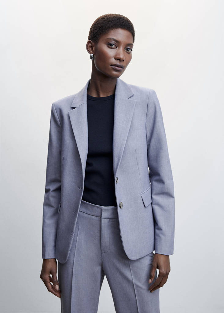 亚麻混纺面料. 直纹裁设计. 半高领. 西装风格. 系扣. 两个带盖口袋. 系扣长袖. 可提供Plus码. 派对和活动系列