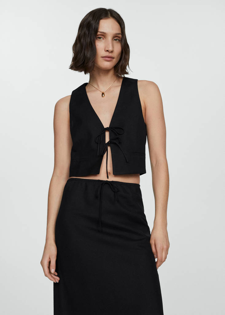 系带马甲当前价格 [¥399.00 ]¥399.00选择颜色黑色模特穿着160/84A (M)码,身高178cm 。选择尺码155/78A (XS)155/80A (S)160/84A (M)165/88A (L)170/92A (XL)175/96A (XXL)175/100A (3XL)测量添加到愿望清单查看造型免费送货到商店亚麻混纺面料. 流畅面料. 直筒设计. 短款设计. V领. 无袖. 正面系蝴蝶结. 整体造型. 节日季. 正面有两个斜插袋细节、成分和护理说明门店库存 我们的材料亚麻布至少20%天然、透气、轻盈。亚麻是炎热潮湿气候下最舒适的纤维;速干且保暖。