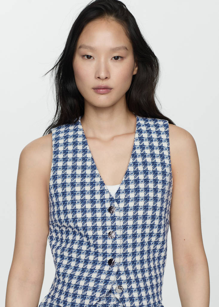 千鸟格马甲当前价格 [¥399.00 ]¥399.00选择颜色蓝色模特穿着160/84A (M)码,身高176cm 。选择尺码155/80A (S)160/84A (M)165/88A (L)170/92A (XL)175/96A (XXL)测量添加到愿望清单查看造型免费送货到商店直筒设计. V领. 无袖. 前襟纽扣闭合. 整体造型. 千鸟格面料细节、成分和护理说明门店库存