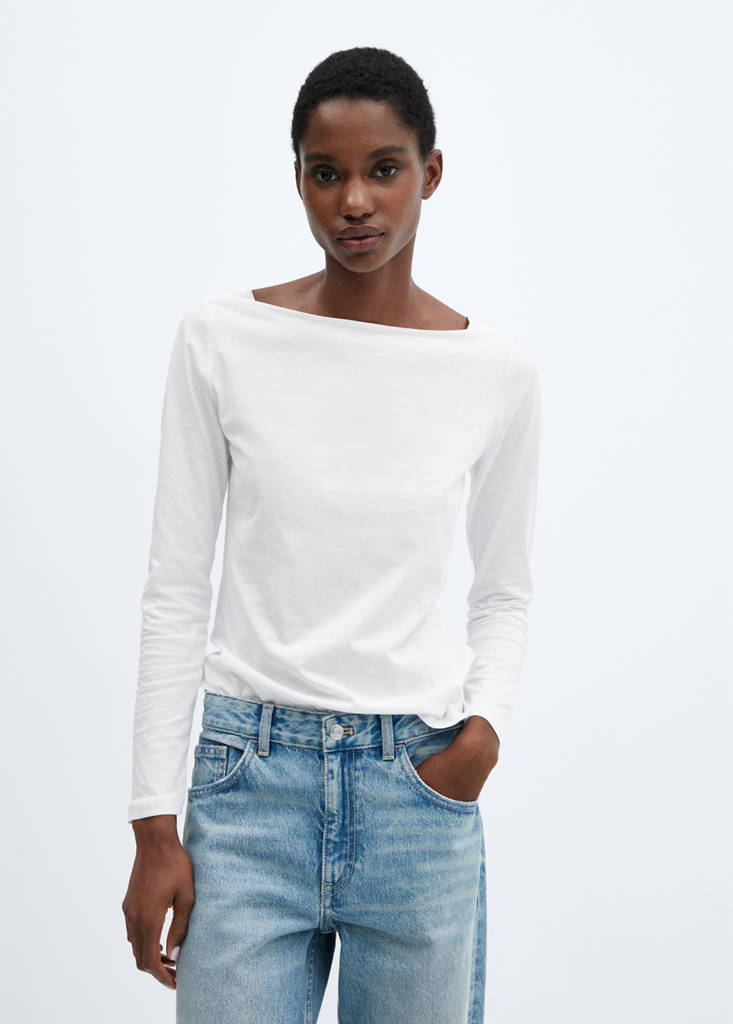 棉质船型领T恤当前价格 [¥119.00 ]¥119.00选择颜色白色选择尺码155/78A (XS)155/80A (S)160/84A (M)165/88A (L)170/92A (XL)175/96A (XXL)175/100A (3XL)测量添加到愿望清单查看造型免费送货到商店修身版型. 直筒设计. 一字领. 长袖. 100% 纯棉面料. 可提供素色和印花. 条纹印花. 可提供Plus码细节、成分和护理说明门店库存 我们的材料回收棉至少20%这种纤维是从消费前和消费后的纺织废料中提取的,可以转化为新的织物。