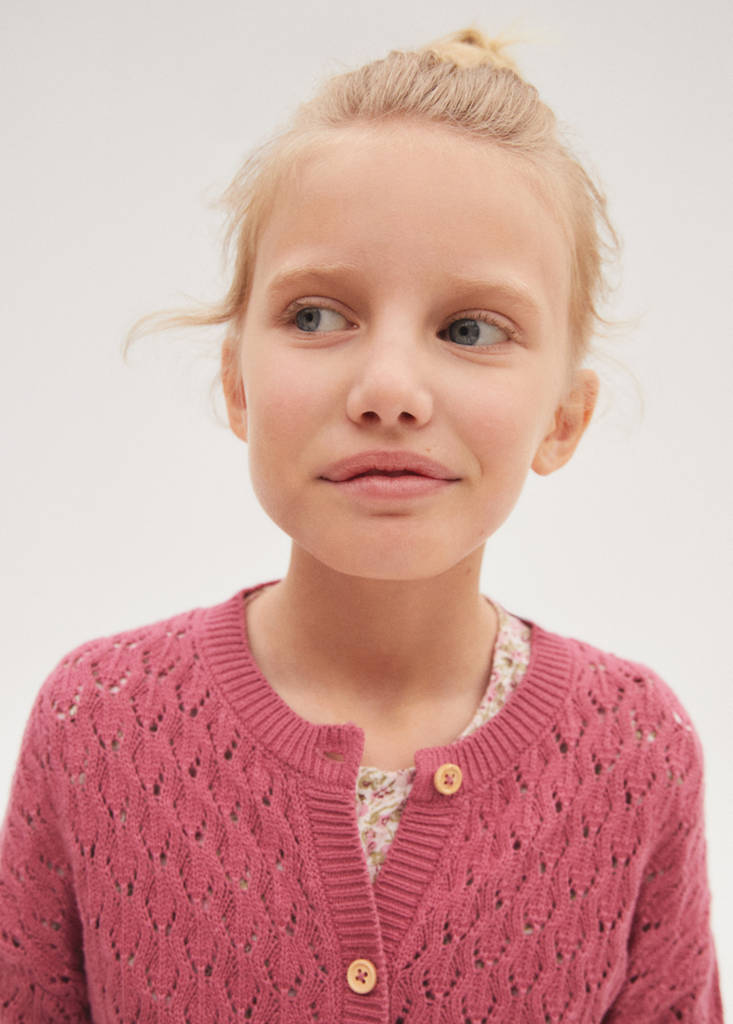 纽扣针织开衫当前价格 [¥259.00 ]¥259.00选择颜色草莓色选择尺码120/64130/68140/72150/76160/80测量添加到愿望清单查看造型免费送货到商店镂空针织. 直筒设计. 中等密度针织. 长袖. 圆领. 纽扣闭合细节、成分和护理说明门店库存 我们的材料回收棉至少20%这种纤维是从消费前和消费后的纺织废料中提取的,可以转化为新的织物。