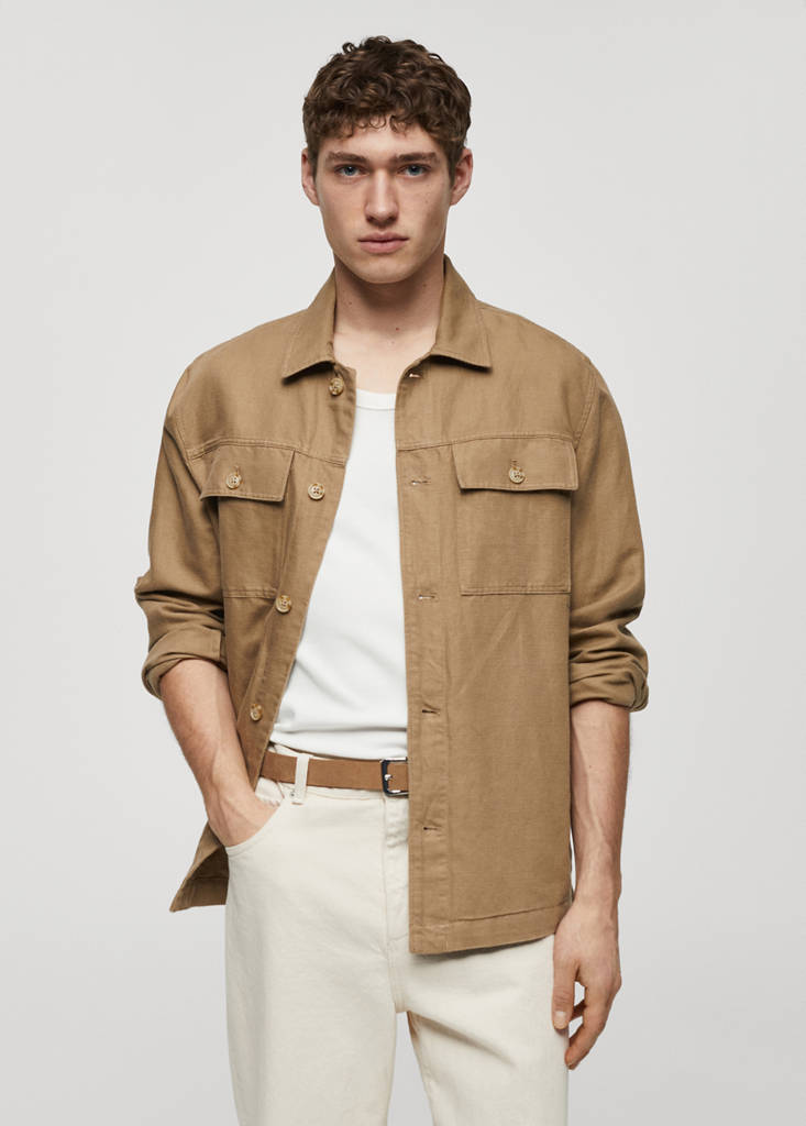 棉麻混纺口袋外套衬衫当前价格 [¥759.00 ]¥759.00选择颜色烟草棕模特穿着180/100A (M)码,身高189cm 。选择尺码180/96A (S)180/100A (M)185/104A (L)190/108A (XL)190/112A (XXL)测量添加到愿望清单查看造型免费送货到商店棕色为线上专属. 棉麻混纺面料. 正面有两个系扣贴袋. 长袖带系扣袖口. 直下摆. 经典领细节、成分和护理说明门店库存 我们的材料亚麻布至少50%天然、透气、轻盈。亚麻是炎热潮湿气候下最舒适的纤维;速干且保暖。