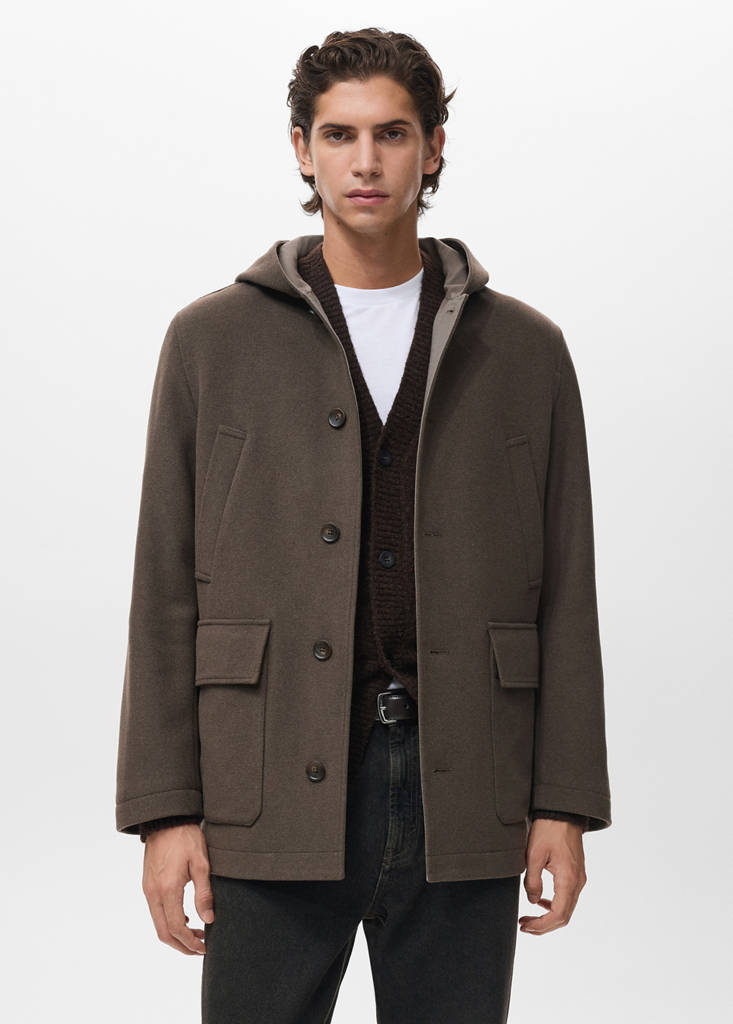 连帽羊毛大衣当前价格 [¥1,199.00 ]¥1,199.00选择颜色中褐色模特穿着180/100A (M)码,身高186cm 。选择尺码175/92A (XS)180/96A (S)180/100A (M)185/104A (L)190/108A (XL)190/112A (XXL)测量添加到愿望清单查看造型免费送货到商店棕色为线上专属. 羊毛混纺面料. 直筒剪裁. 带帽. 侧面有两个带盖口袋. 胸前有两个插袋. 内袋. 长袖. 内衬. 前扣闭合细节、成分和护理说明门店库存 我们的材料再生羊毛至少50%这种纤维是从消费前和消费后的羊毛纺织废料中提取的,可以转化为新的织物。