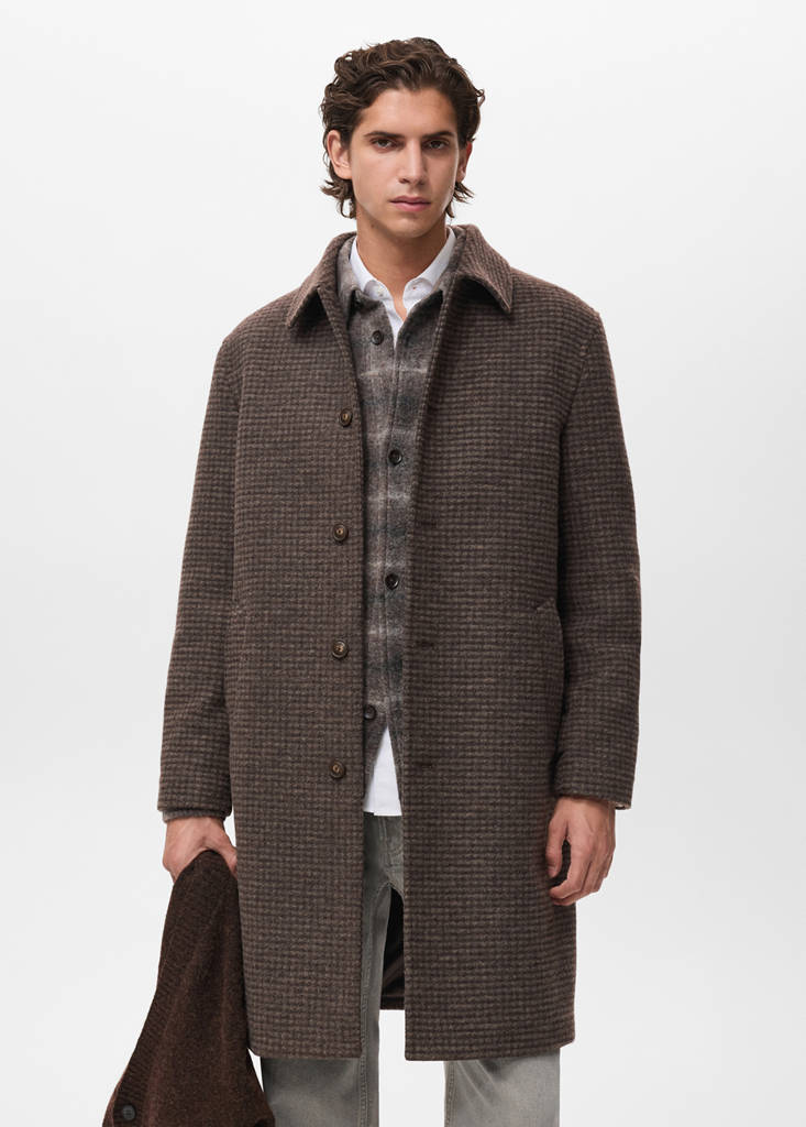 长款格纹结构大衣当前价格 [¥1,799.00 ]¥1,799.00选择颜色中褐色版型偏大--请在平时的尺码基础上选择小一号。选择尺码180/96A (S)180/100A (M)185/104A (L)190/108A (XL)190/112A (XXL)添加到愿望清单查看造型免费送货到商店查看商店库存情况描述直筒剪裁. 迷你格纹印花. 混纺羊毛织物. 凹形翻领. 两个侧袋. 有衬里. 长袖带系扣袖口. 后摆开衩. 前扣闭合.查看详情分享