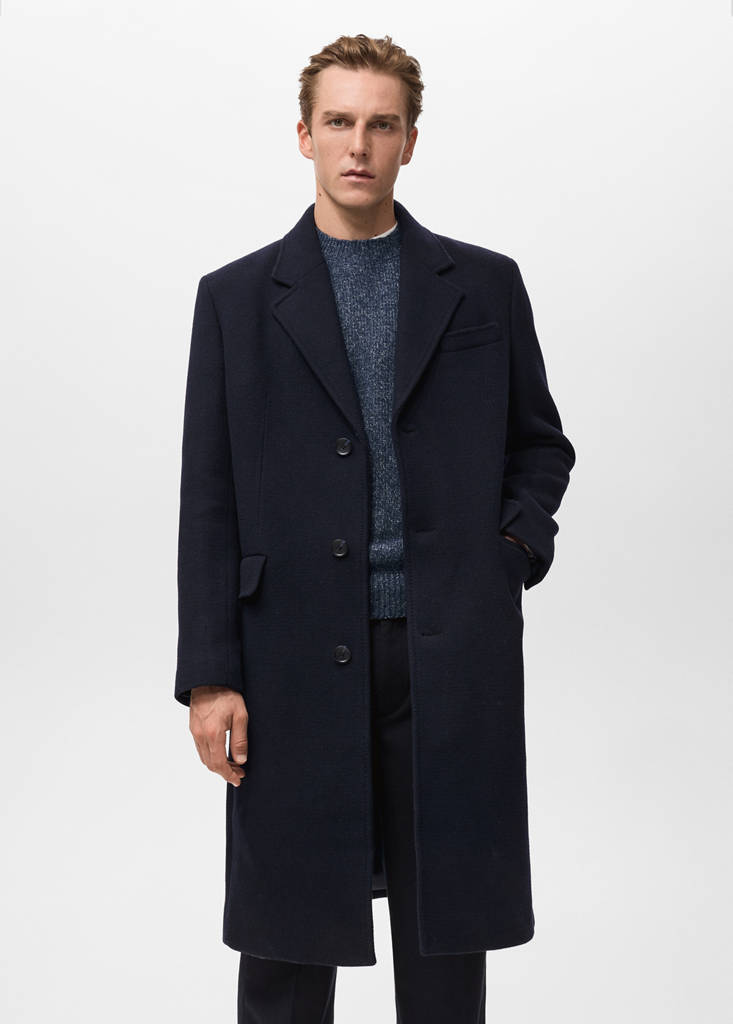 长款羊毛大衣当前价格 [¥1,999.00 ]¥1,999.00选择颜色海军蓝模特穿着180/100A (M)码,身高185cm 。选择尺码180/96A (S)180/100A (M)185/104A (L)190/108A (XL)测量添加到愿望清单查看造型免费送货到商店羊毛混纺面料. 长款设计. 翻领领口. 系三颗纽扣. 纽扣袖口. 两个正面翻盖口袋. 下摆中央开口. 内衬细节、成分和护理说明门店库存 我们的材料再生羊毛至少60%这种纤维是从消费前和消费后的羊毛纺织废料中提取的,可以转化为新的织物。