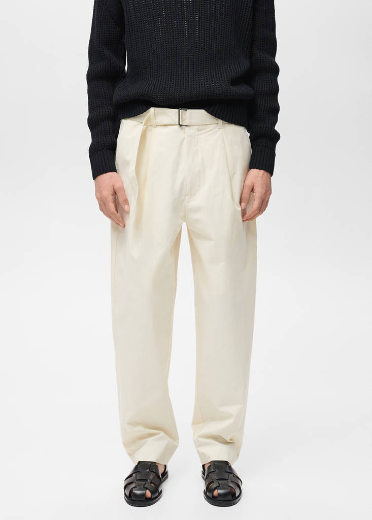 带腰带的宽松版型长裤当前价格 [¥659.00 ]¥659.00选择颜色米色模特穿着180/84A (42)码,身高185cm 。选择尺码175/76A (38)180/80A (40)180/84A (42)185/88A (44)190/92A (46)测量添加到愿望清单查看造型免费送货到商店宽松款. 棉混纺面料. 可调节腰带,颜色与金属搭扣长裤相同. 前褶细节. 两个侧袋. 后部两个嵌线袋细节、成分和护理说明门店库存