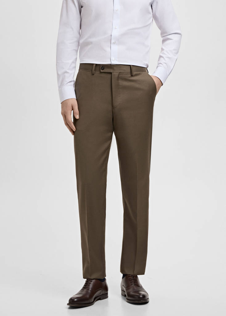 修身版型. 100%初剪羊毛面料. 熨烫条纹细节. 两个侧袋. 硬币口袋. 后部两个嵌线袋. 前襟拉链、钩扣和双扣开合. 腰带环