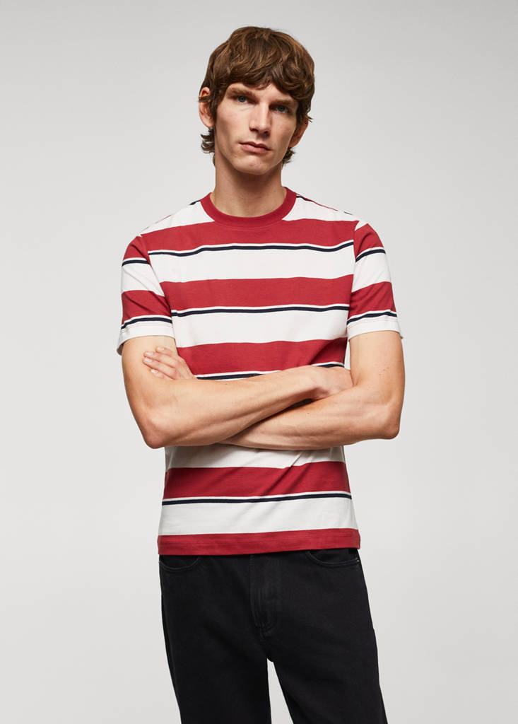 条纹100%棉质T恤当前价格 [¥239.00 ]¥239.00选择颜色红色模特穿着180/100A (M)码,身高187cm 。选择尺码175/92A (XS)180/96A (S)180/100A (M)185/104A (L)190/108A (XL)190/112A (XXL)测量添加到愿望清单查看造型免费送货到商店100% 纯棉. 修身版型. 条纹印花. 短袖. 直下摆100%棉, 修身, 条纹印花, 短袖, 直筒衣摆, 模特身高190cm,身穿M码。.细节、成分和护理说明门店库存