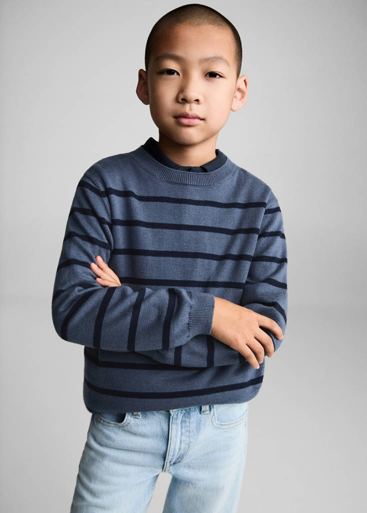条纹针织毛衣当前价格 [¥239.00 ]¥239.00选择颜色蓝色选择尺码120/64130/68140/72150/76160/80测量添加到愿望清单查看造型免费送货到商店直筒设计. 针织面料. 圆领. 长袖. 无扣设计. 条纹设计细节、成分和护理说明门店库存 我们的材料回收棉至少20%这种纤维是从消费前和消费后的纺织废料中提取的,可以转化为新的织物。