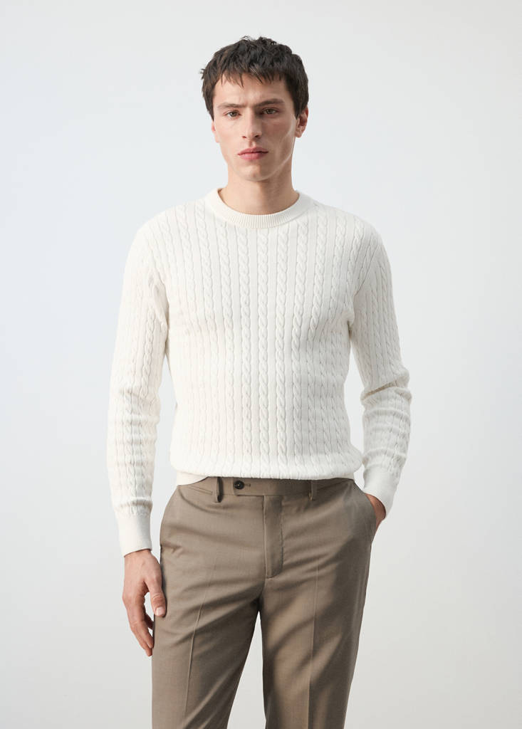 ESSENTIALS100% 纯棉麻花编织毛衣当前价格 [¥499.00 ]¥499.00选择颜色灰白模特穿着180/100A (M)码,身高188cm 。选择尺码180/96A (S)180/100A (M)185/104A (L)190/108A (XL)190/112A (XXL)尺寸指南添加到愿望清单查看造型免费送货到商店查看商店库存情况描述米白色为网店专属款式。. 100% 纯棉. 针织编织面料. 常规版型. 标准长度. 圆领. 领口、袖口和下摆罗纹处理. Casper Ruud x Mango系列.查看详情