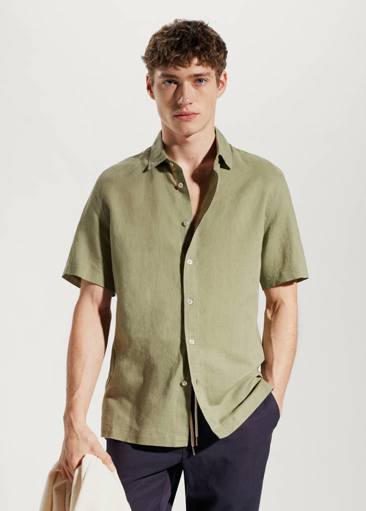 100%亚麻短袖衬衫当前价格 [¥399.00 ]¥399.00选择颜色绿色模特穿着180/100A (M)码,身高189cm 。选择尺码175/92A (XS)180/96A (S)180/100A (M)185/104A (L)190/108A (XL)190/112A (XXL)测量添加到愿望清单查看造型免费送货到商店100%亚麻面料. 轻薄面料. 修身. 常规领. 正面系扣. 短袖. 直筒衣摆. 侧面开衩衣摆细节、成分和护理说明门店库存 我们的材料亚麻布100%天然、透气、轻盈。亚麻是炎热潮湿气候下最舒适的纤维;速干且保暖。