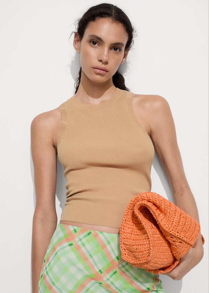 罗纹针织上衣当前价格 [¥259.00 ]¥259.00选择颜色中褐色模特穿着160/84A (M)码,身高176cm 。选择尺码155/78A (XS)155/80A (S)160/84A (M)165/88A (L)170/92A (XL)175/96A (XXL)175/100A (3XL)测量添加到愿望清单查看造型免费送货到商店细线针织面料. 棱纹针织面料. 圆领. 宽肩带. 无扣设计. 可提供Plus码. 办公室着装. 修身设计. 无袖. 直筒设计细节、成分和护理说明门店库存