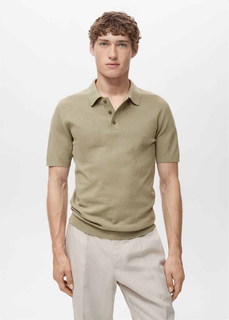 El color khaki es exclusivo online. Silueta recta. Tejido mezcla de algodón. Tejido de punto fino con microestructura. Cuello polo con cierre de botones. Manga corta. Terminaciones en canalé en cuello, manga y bajo. Bajo recto. Slim fit. Manga corta. Terminaciones en canalé en manga y bajo. Producto en promoción
