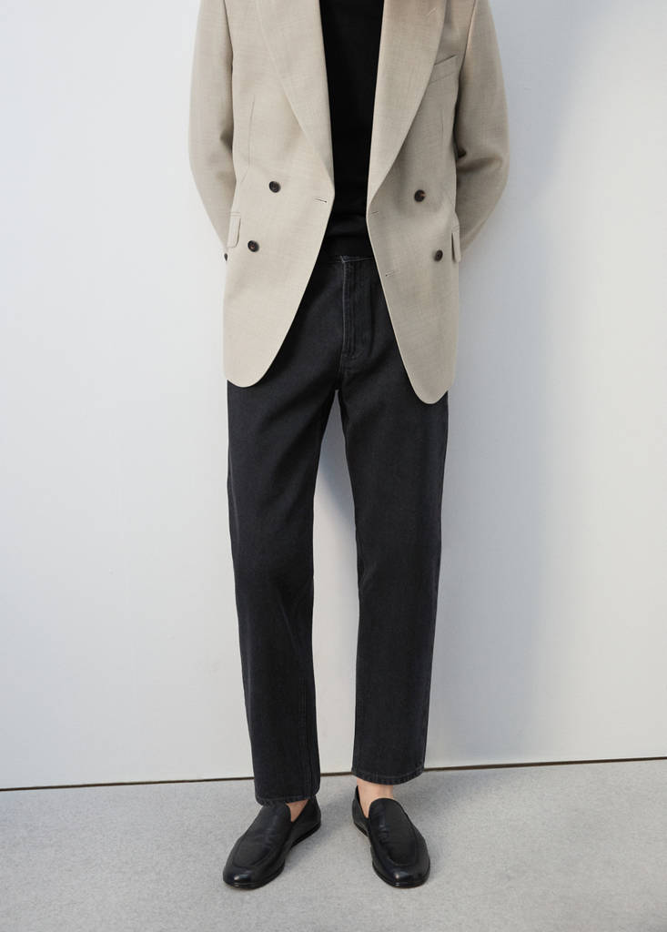 Tejido estilo tejano vaquero 100% algodón. Silueta Carrot. Tapered fit: corte ancho en la parte superior que se va estrechando de la rodilla al tobillo. Bajo cropped. Cierre de botón y cremallera. Trabillas para cinturón. Dos bolsillos portamonedas. Dos bolsillos de parche en la parte posterior