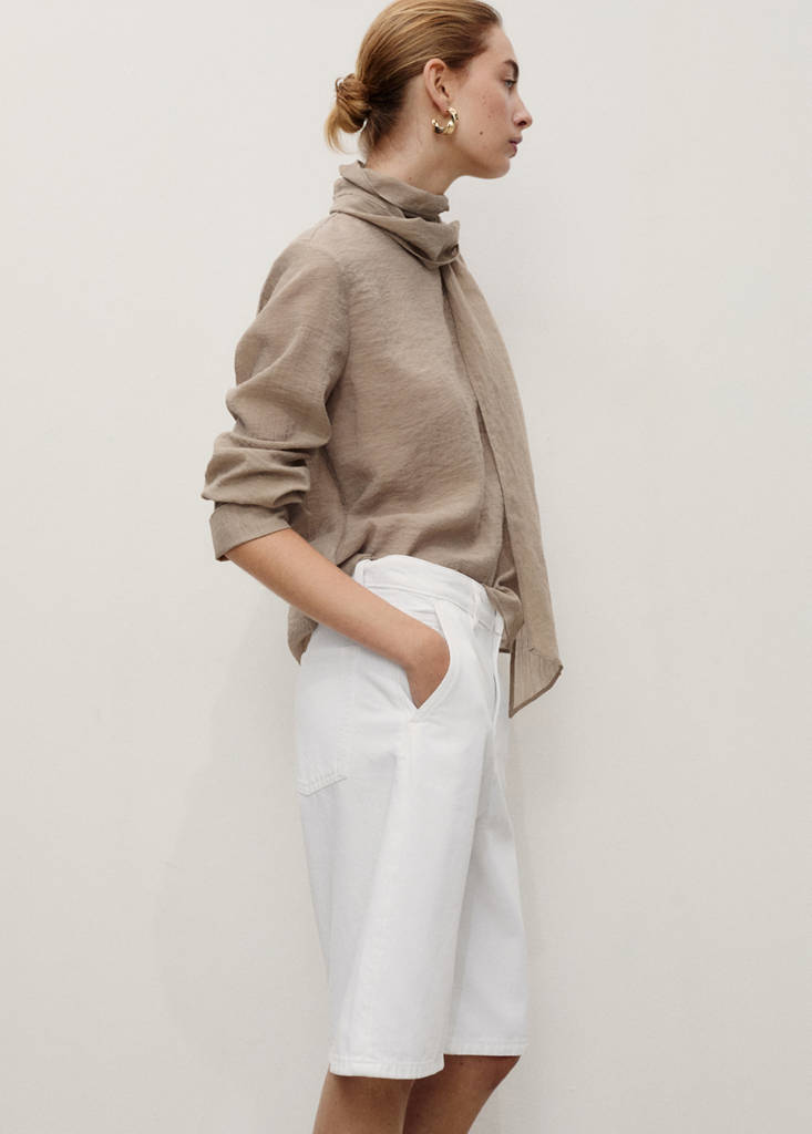 Bermuda jorts denim tiro medioPrecio actual [$ 199.900 ]$ 199.900Selecciona un colorBlancoLa modelo lleva la talla 36 y mide 178cm.Selecciona tu talla32No disponible ¡Lo quiero!34No disponible ¡Lo quiero!36No disponible ¡Lo quiero!38No disponible ¡Lo quiero!40No disponible ¡Lo quiero!42No disponible ¡Lo quiero!44No disponible ¡Lo quiero!46No disponible ¡Lo quiero!MedidasAvísameAñadir a FavoritosVer lookServicio de entrega a domicilioTejido de algodón estilo tejano vaquero. Diseño jort. Diseño recto. Tiro medio. Trabillas. Cuatro bolsillos. Cierre de cremallera y botónDetalles, composición y cuidadosDisponibilidad en tiendaCualidades del artículoAlgodón recicladoAl menos 20%Esta fibra se obtiene a partir de restos textiles pre y post consumo que se transforman en nuevos tejidos.