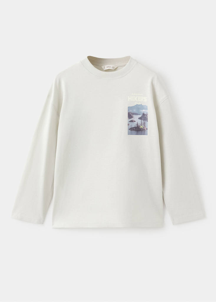Tejido 100% algodón. Diseño recto. Diseño estampado. Dibujo estampado en la parte delantera. Dibujo estampado en la parte trasera. Cuello redondo. Manga larga