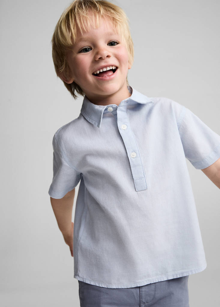 Tejido mezcla de algodón y lino. Regular fit. Cuello camisero. Manga corta. Cierre de botones