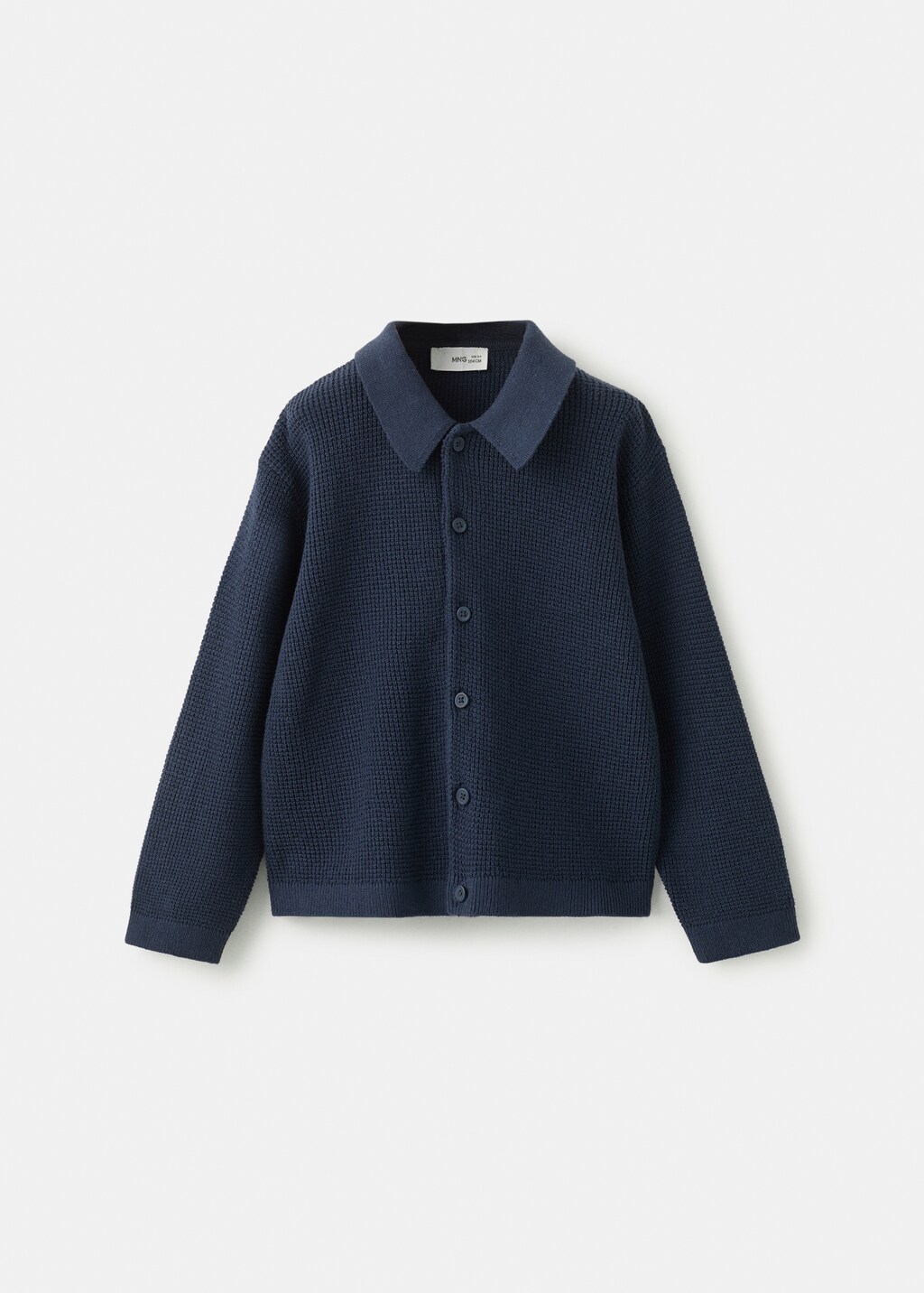 Tejido 100% algodón. Tejido de punto. Diseño recto. Cuello camisero. Manga larga. Cierre delantero con botones.