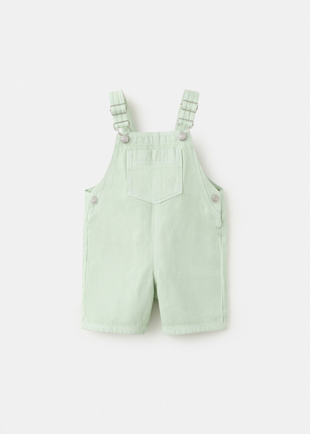 Tejido estilo tejano vaquero 100% algodón. Tirantes anchos. Hebillas ajustables. Bolsillo de parche en el pecho. Dos bolsillos de parche traseros.