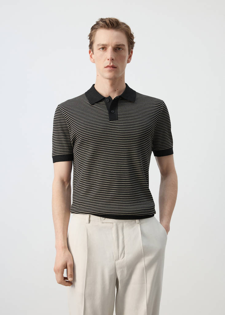 Exclusivo onlinePolo algodón punto rayasPrecio actual [C 39 990,00 ]C 39 990,00Selecciona un colorNegroEl modelo lleva la talla M y mide 185cm.Selecciona tu tallaSMLXLXXL¡Últimas unidades!MedidasAñadirGuardar como favoritoVer lookEnvío gratis a tiendaTejido mezcla de algodón. Regular fit. Largo Standard. Diseño de rayas. Cuello polo con cierre de botones. Bajo rectoDetalles, composición y cuidadosDisponibilidad en tienda