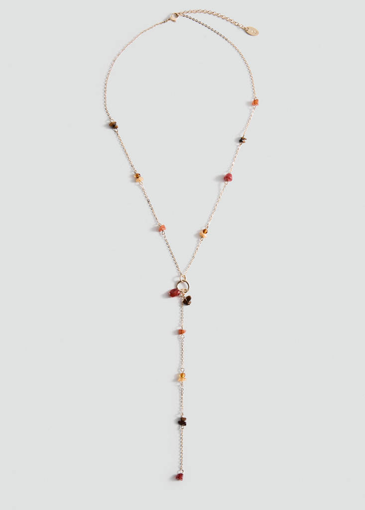 Diseño largo. Diseño cadena. Detalle de abalorios. Cierre de cadena y mosquetón