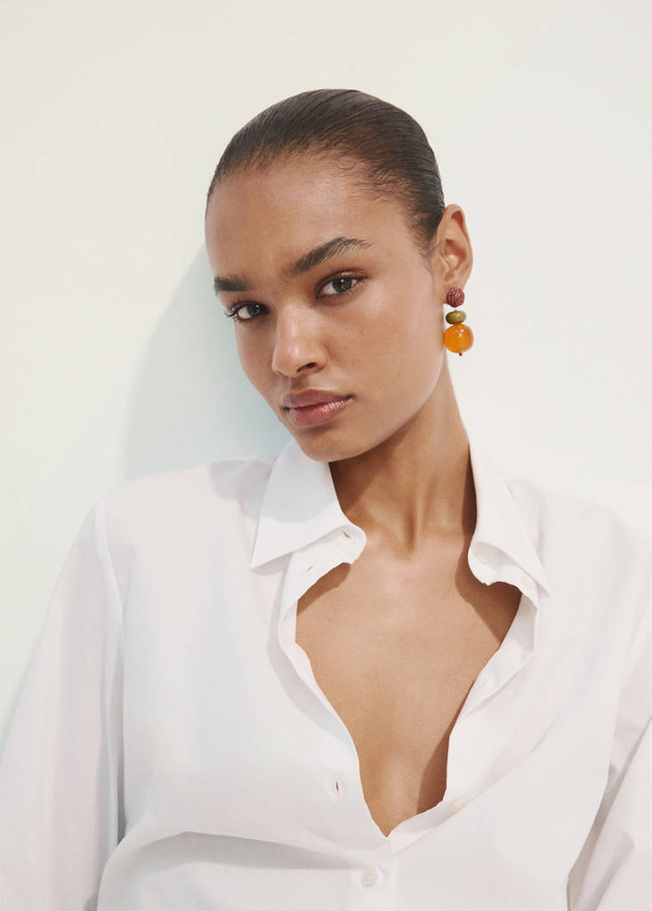 Tamaño mediano. Diseño largo. Diseño combinado. Abalorios de resina. Detalles de rafia. Cierre metálico a presión
