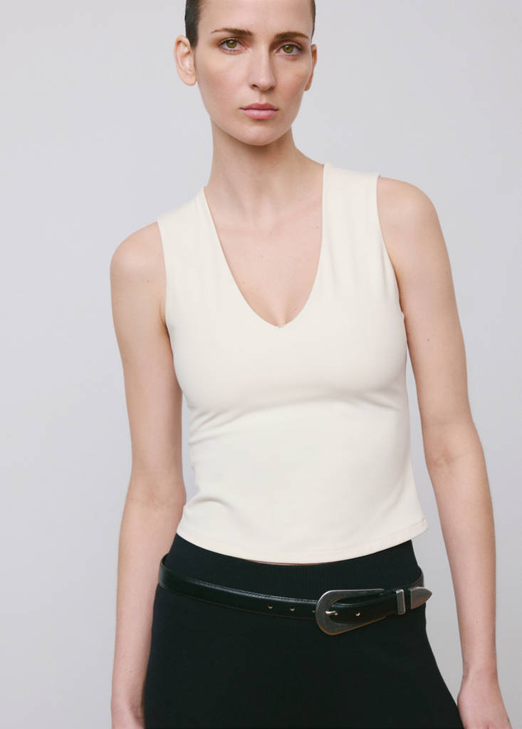 Top entallado escote picoPrecio actual [C 13 990,00 ]C 13 990,00Selecciona un colorCrudoLa modelo lleva la talla S y mide 180cm.Selecciona tu tallaXXSXSSMLXLXXLMedidasAñadirGuardar como favoritoVer lookEnvío gratis a tiendaDiseño entallado. Escote de pico. Sin mangas. Tirante ancho. Sin cierreDetalles, composición y cuidadosDisponibilidad en tienda
