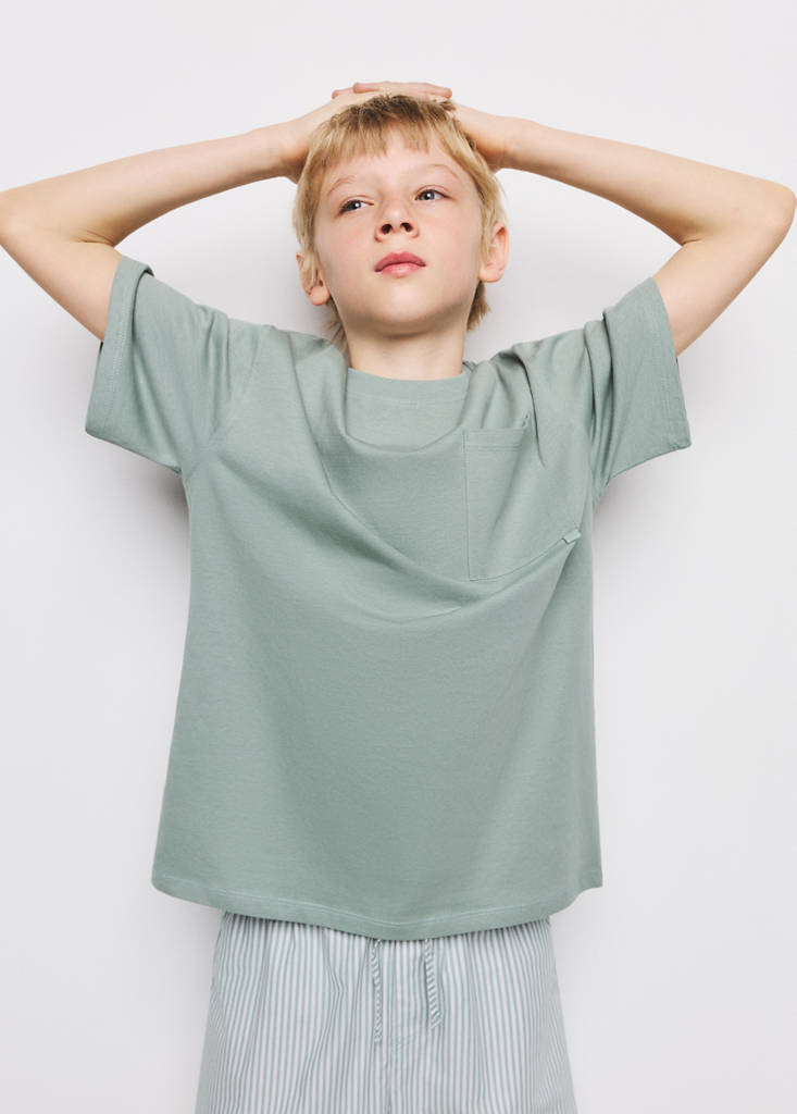Pack de camiseta de manga corta y pantalón corto de pijama. Tejido 100% algodón. Manga corta. Detalle bolsillo pecho. Pantalón corto de rayas. Cintura elástica con cordón