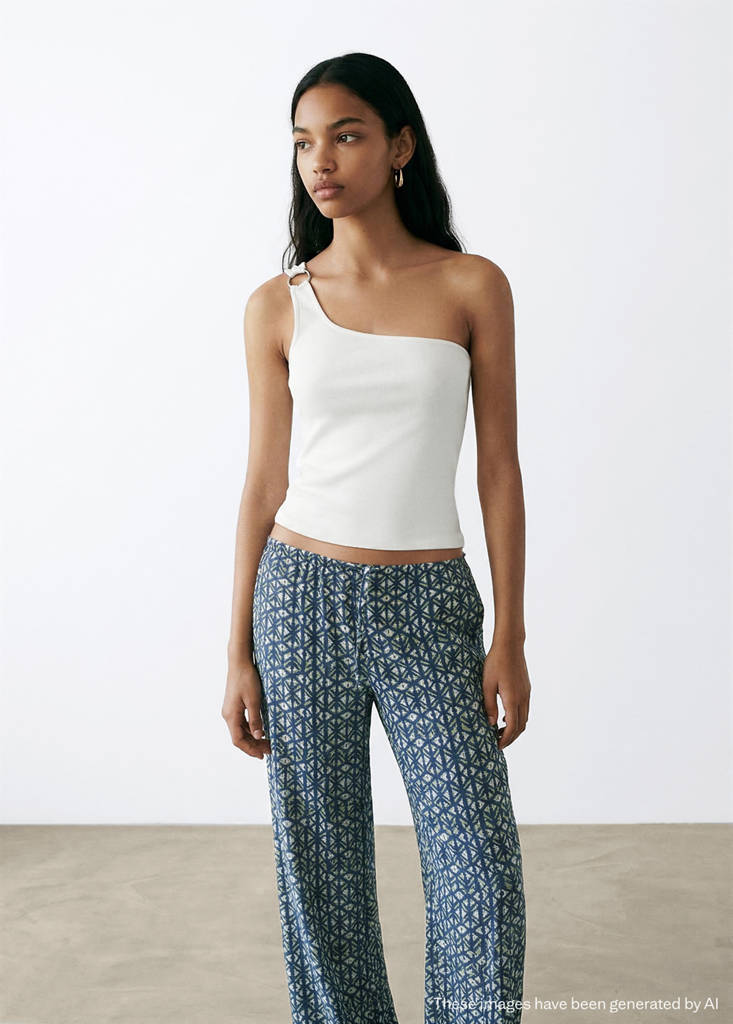 Diseño asimétrico. Tirantes finos triples. Detalle de anilla metálica