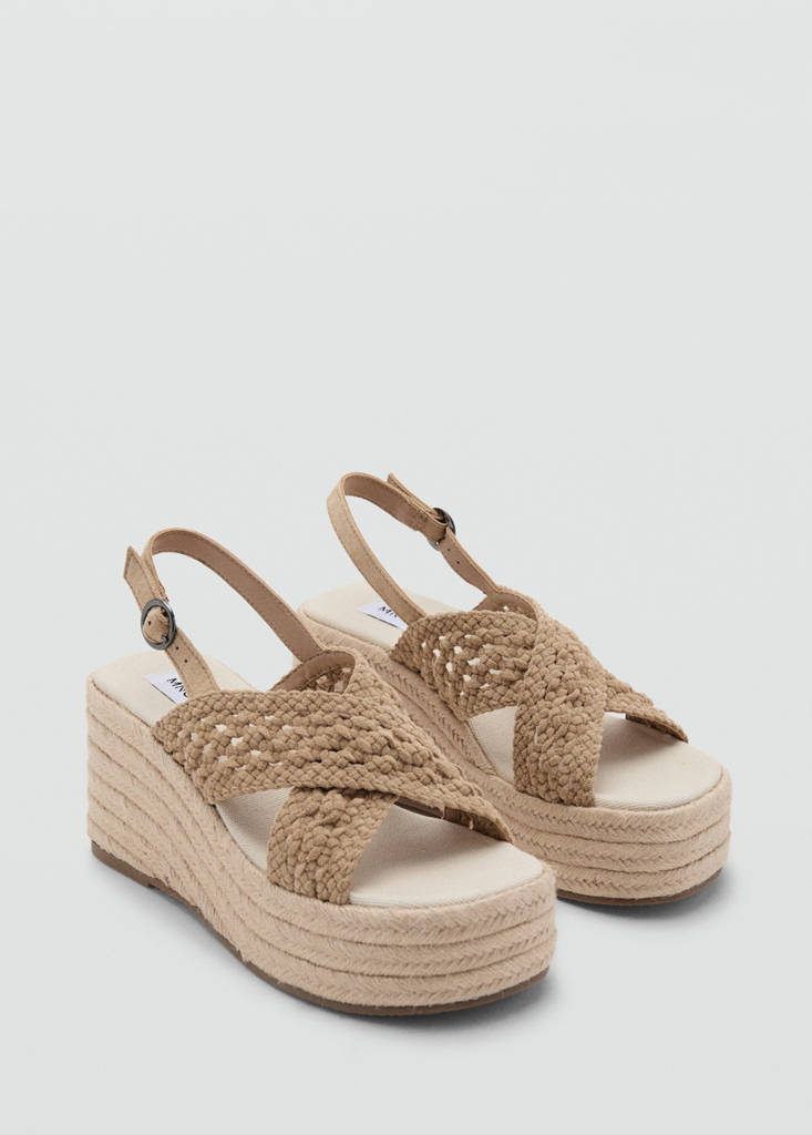 Diseño de tiras cruzadas. Suela de esparto. Plataforma. Cierre de hebilla en el tobillo. La plataforma mide 9 cm