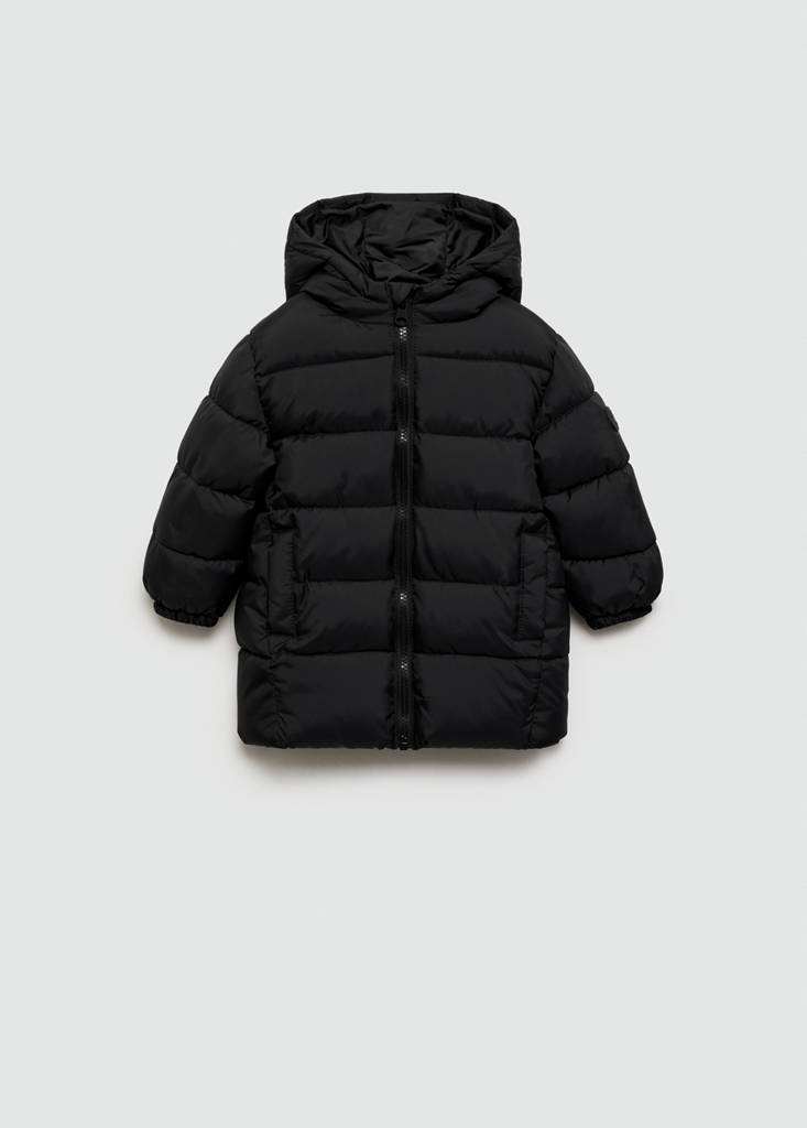 Quilted design. Straight design. Hood. Long sleeves. Two pockets. Zip fastening. Label for personal data