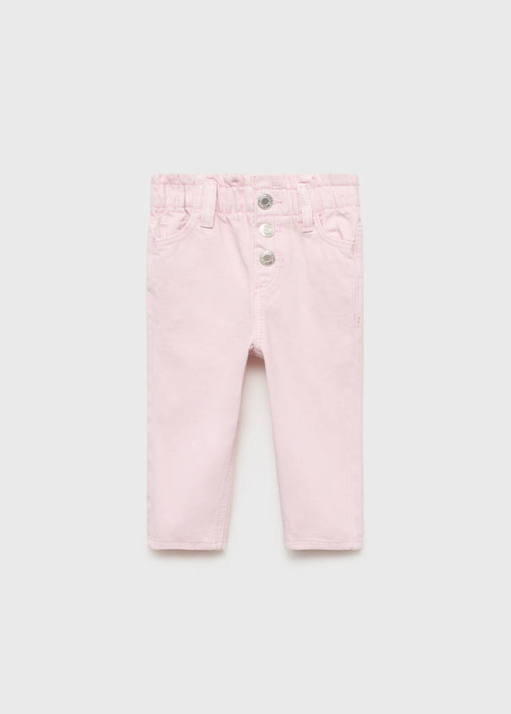 Paper bag jeans with buttonsCurrent price [ANG 59.00 ]ANG 59.00Select a colourPinkSelect your size9-12 months (80cm)Not available. I want it!12-18 months (86cm)Not available. I want it!18-24 months (92cm)Not available. I want it!2-3 years (98cm)Not available. I want it!3-4 years (104cm)Not available. I want it!4-5 years (110cm)Not available. I want it!5-6 years (116cm)Not available. I want it!DimensionsNotify meAdd to WishlistSee lookFree delivery to store100% cotton fabric. Long design. Paperbag. Belt loops. Button up. Two side pockets. Two patch pockets at the backDetails, composition and careStore availabilityItem qualitiesRecycled cottonAt least 20%This fibre is obtained from pre- and post-consumer textile waste that is transformed into new fabrics.