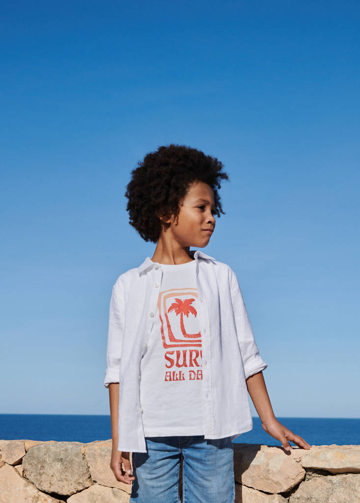 Embossed. Print. Straight design. Rounded neck. Short sleeve