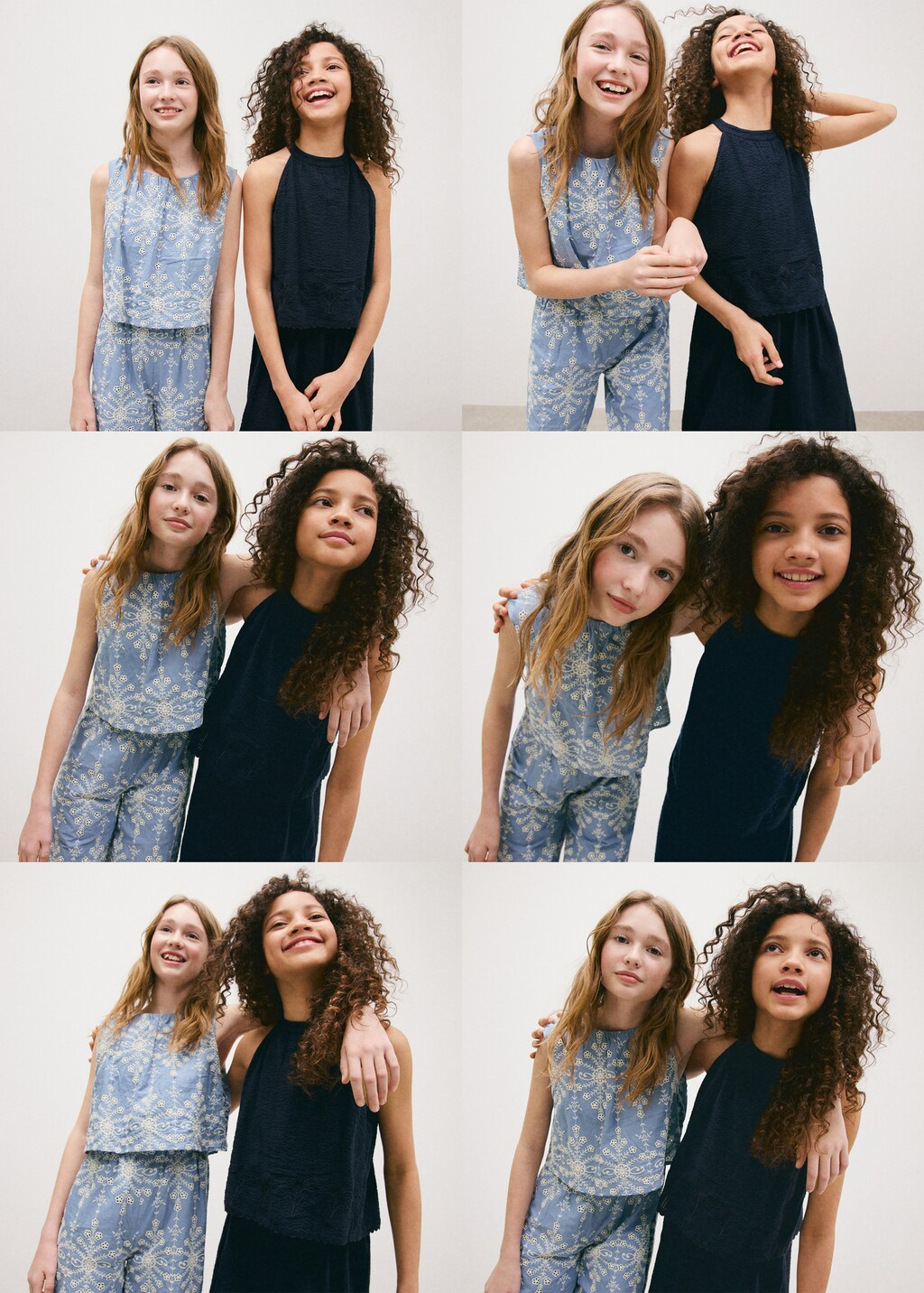 100% cotton fabric. Long design. Halter neck. Sleeveless. Gathered Waist. Button closure at the back. Scalloped details.