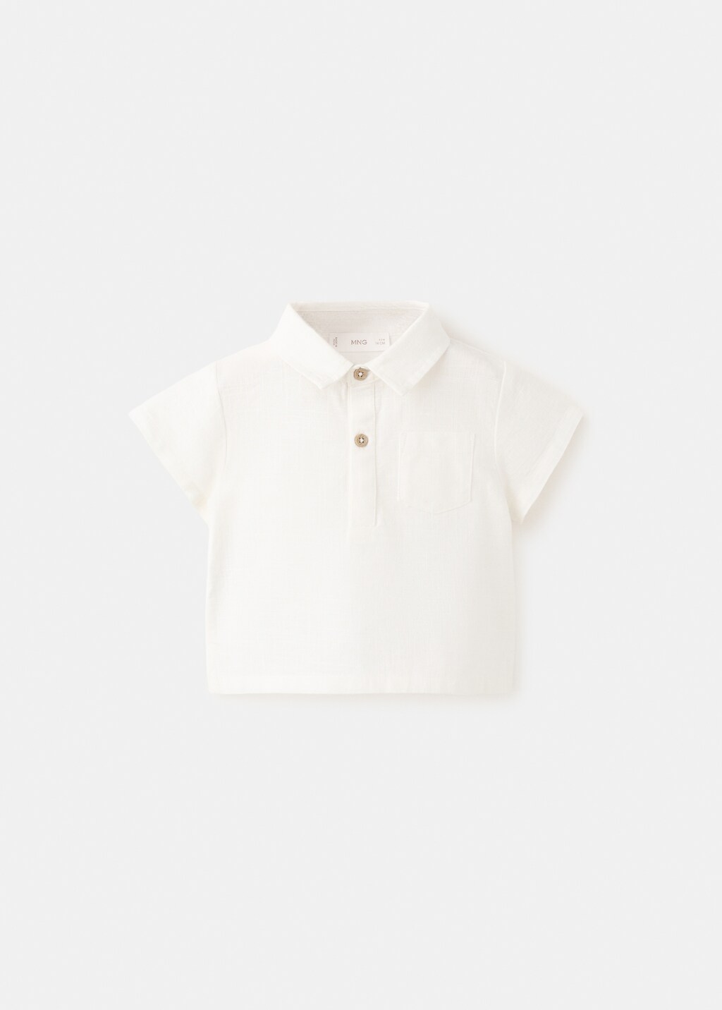 100% cotton fabric. Straight design. Shirt collar. Short sleeves. Button fastening at the neck. Knitted top with zip.