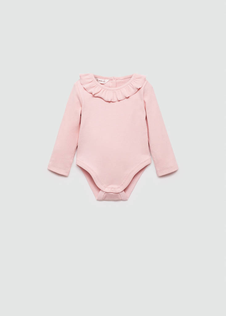 Fabric with cotton. Straight design. Round neck. Ruffle-neck bodysuit. Ribbed design. Bottom opening with button fastening. Press-stud fastening. Maternity Collection