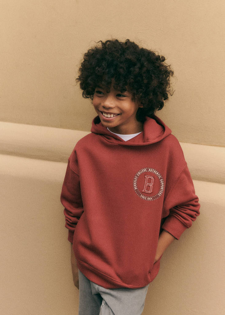 Fabric with cotton. Straight design. Hood. No Fastening. Embroidered detail. V-neck. Two side pockets