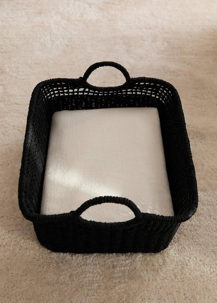 100% paper. Diameter: 40 cm. Height: 16 cm. Decorative and functional basket. Two handles. 100% paper, functional and with a rustic style. Perfect for any room or use; such as storing clothes, towels, blankets or various objects. Available in two colours