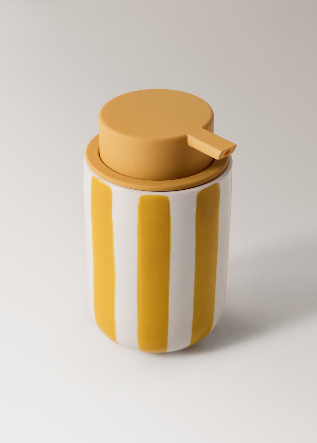 Painted stripe ceramic dispenserCurrent price [€ 22.99 ]€ 22.99Select a colourMustardSelect your sizeOne sizeAddAdd to your wishlistFree delivery to storeSee availability in storeDescription100% ceramic. Height: 12.9 cm. Stripe design. Combines functionality with contemporary style. Available in three colours. Complete with more products from the collection.See detailsShare