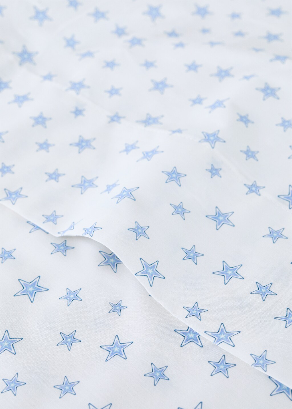 200-thread count percale cotton. Size: 100x150 cm. Little star design. Cot bed top sheet made from 200-thread count percale cotton, known for its softness, coolness, and durability. Complete with the products from the collection.