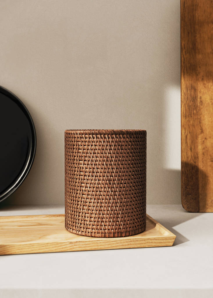 100% rattan. Size: 12x14.5 cm. Basket for storing kitchen utensils. Braided design. High-quality and durable materials. Add a distinctive and sophisticated touch to your kitchen. Coordinates with more products from the collection