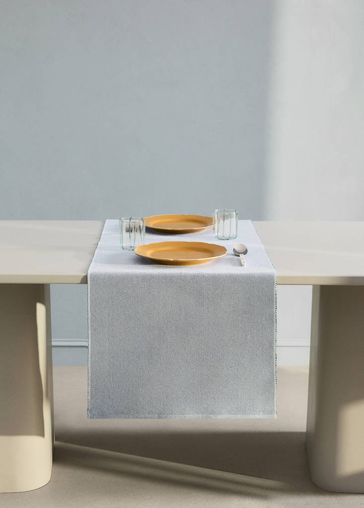 Cotton table runner with melange effectCurrent price [€ 25.99 ]€ 25.99Select a colourBlueSelect your size50x160cmAddAdd to your wishlistSee lookFree delivery to store100% Cotton. Size: 50x160cm. Melange effect. Dyed yarns with striped design. Flecked design. Available in different colours. Combine it with more products from the collectionDetails, composition and careStore availability