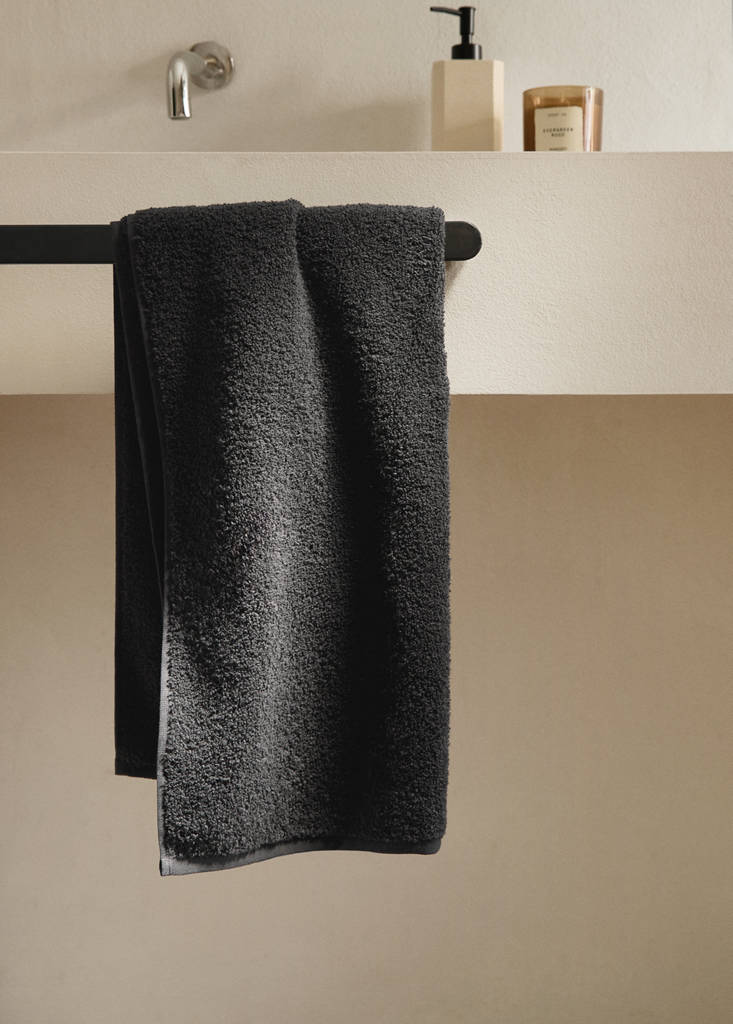 100% Cotton. 600 GSM. Size: 50x90cm. Plain design. High-quality and durable materials. High grammage and 100% cotton fabric to have a good absorption in your bathroom. Wide range of colors to combine with other towel models, bathrobes, and Mango Home accessories. Pleasant and soft texture. Discover the ultimate softness in your bath linen along with excellent absorbency. Coordinates with more products from the collection. Hand towel. Natural fibre fabric. Pleasant texture