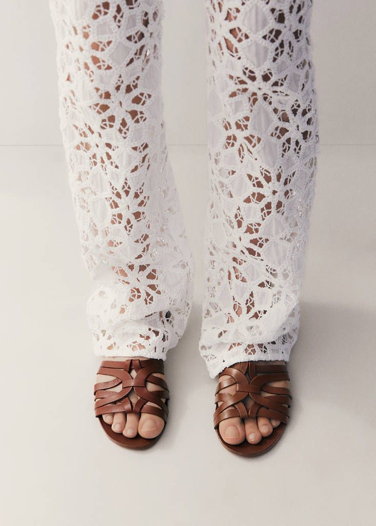 Leather straps sandalsCurrent price [€ 39.99 ]€ 39.99Select a colourLeatherSelect your size35Not available. I want it!36Not available. I want it!37Not available. I want it!38Not available. I want it!39Not available. I want it!40Not available. I want it!41Not available. I want it!42Not available. I want it!DimensionsNotify meAdd to WishlistSee lookFree delivery to store100% Leather. Rounded toe. Flat. Festival SeasonDetails, composition and careStore availability