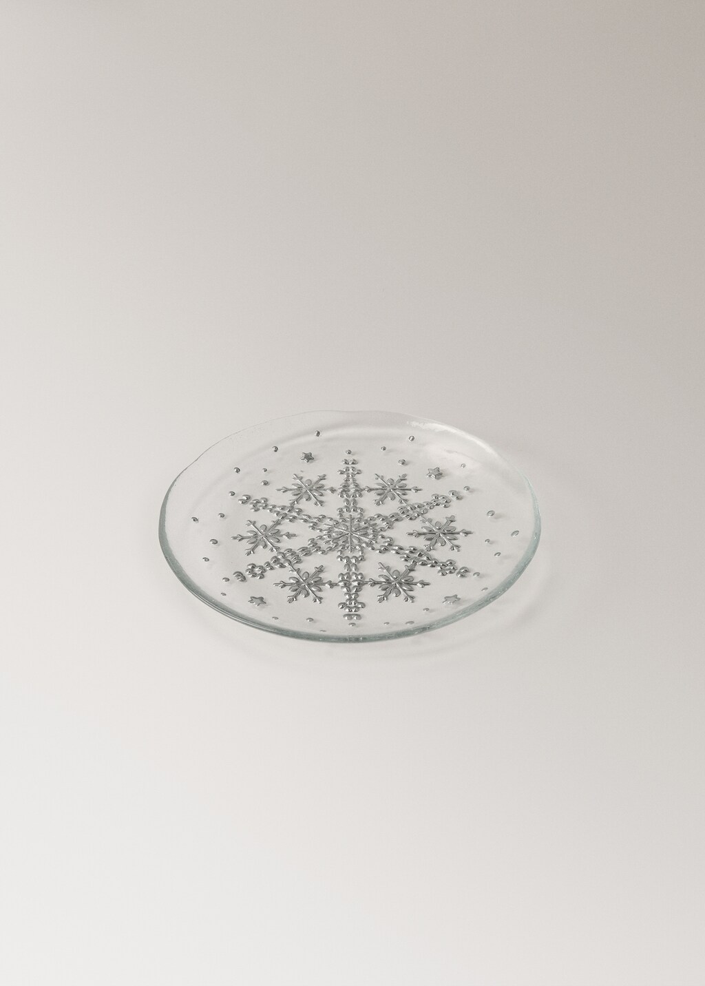 100% sklo. Skleněný talíř na dezert s elegantním a slavnostním designem, ideální pro zimní nebo vánoční sezónu. Kompaktní formát je ideální pro servírování jednotlivých dezertů, dodává slavnostní a dekorativní nádech prostřenému stolu. Zcela transparentní, což usnadňuje zvýraznění detailů vyrytých na povrchu produktu. Vánoční kolekce.