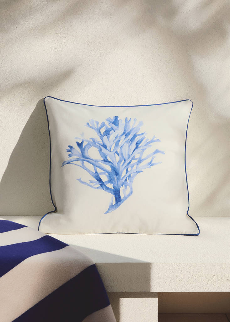 100% bavlna. Velikost: 50x50 cm. Detail potisku korálů. Detail kontrastního lemování. Výplň není součástí balení. Zapínání na skrytý zip vzadu. Dostupné i v jiné velikosti. Přidejte barevný nádech do svého prostoru