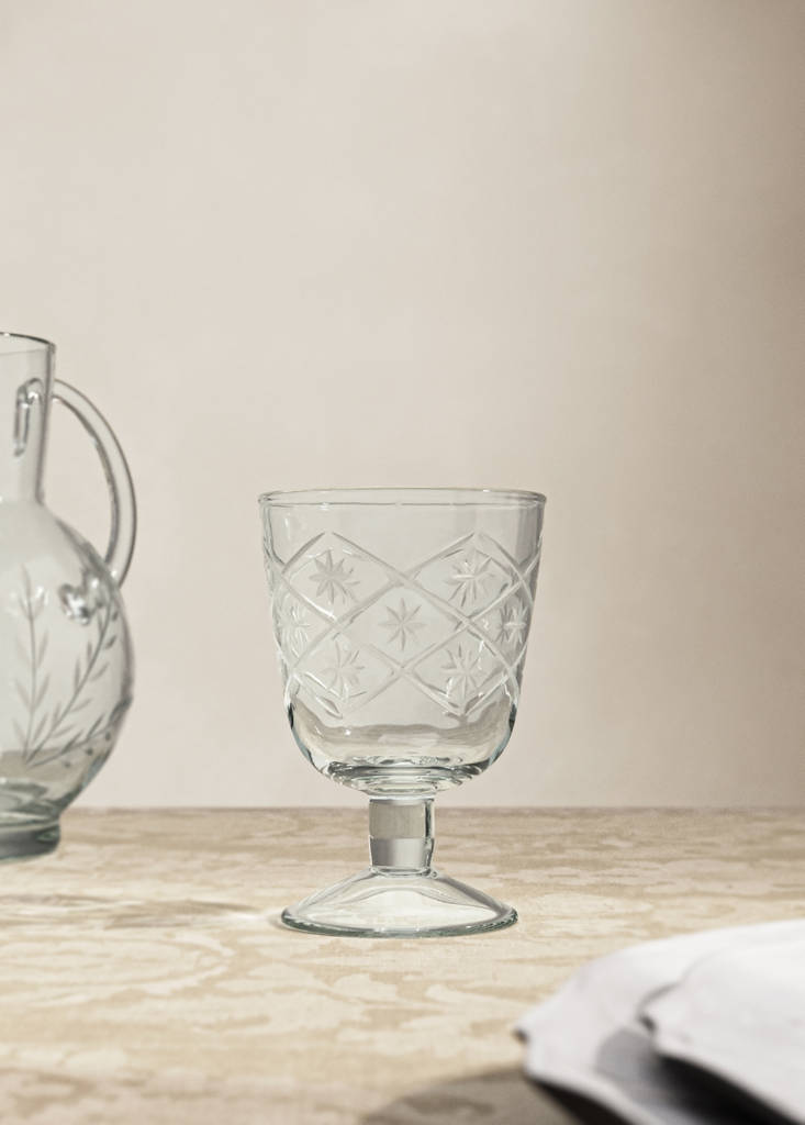 100% sklo. Rozměry: 12x8,3cm. Průhledný design. Design broušených květin. Ozdobte svůj stůl speciálním nádechem. Lze mýt v myčce nádobí. Lze kombinovat s dalšími produkty z kolekce