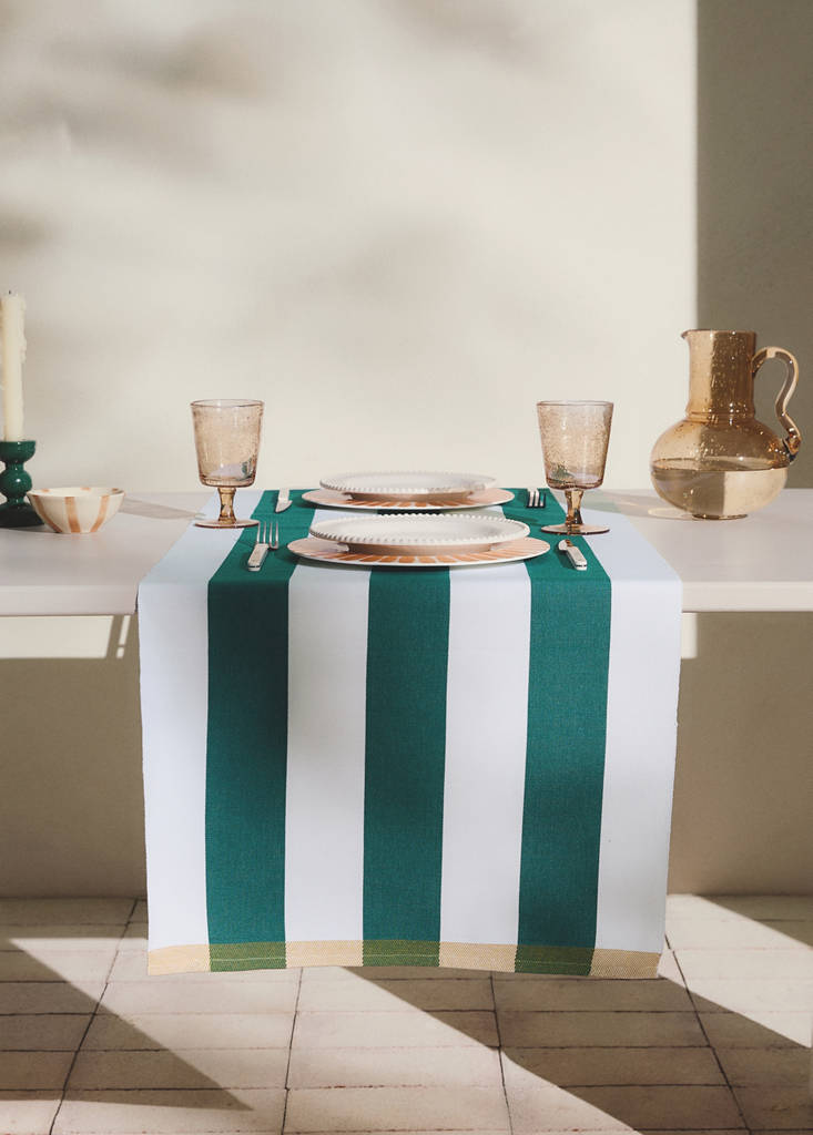Běhoun na stůl s potiskem pruhů 100% bavlnaAktuální cena [599 Kč ]599 KčVyberte barvuZelenáZvolte svou velikost50x160cmPřidatUložit do seznamu přáníZobrazit lookDoprava zdarma do prodejny100% bavlna. Velikost: 50x160 cm. Ozdobte svůj stůl speciálním nádechem. Pruhovaný design. Dostupný ve dvou barváchPodrobnosti, složení a péčeDostupnost v obchodě