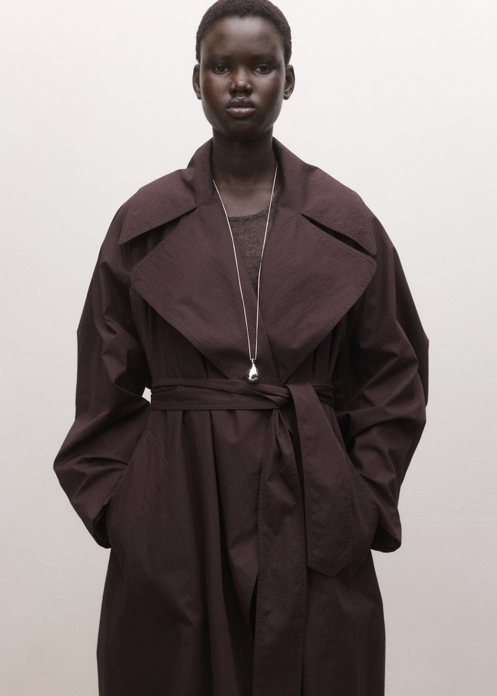 Maxi bavlněný trenčkot s velkými klopami a páskem