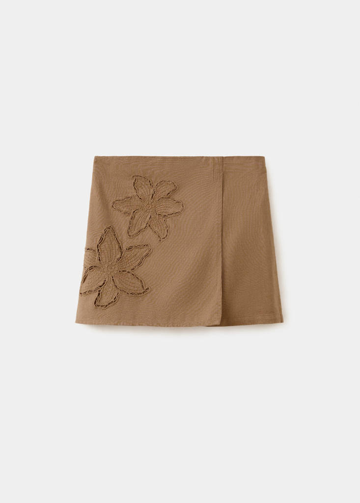 Cotton and linen blend fabric. Straight design. Short design. Embroidered floral detail